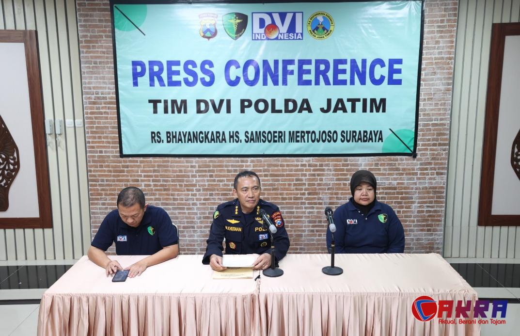 Kombes Pol Kusnan menambahkan, tim DVI Polda Jatim terus berupaya mempercepat proses identifikasi agar keluarga korban segera mendapatkan kepastian.