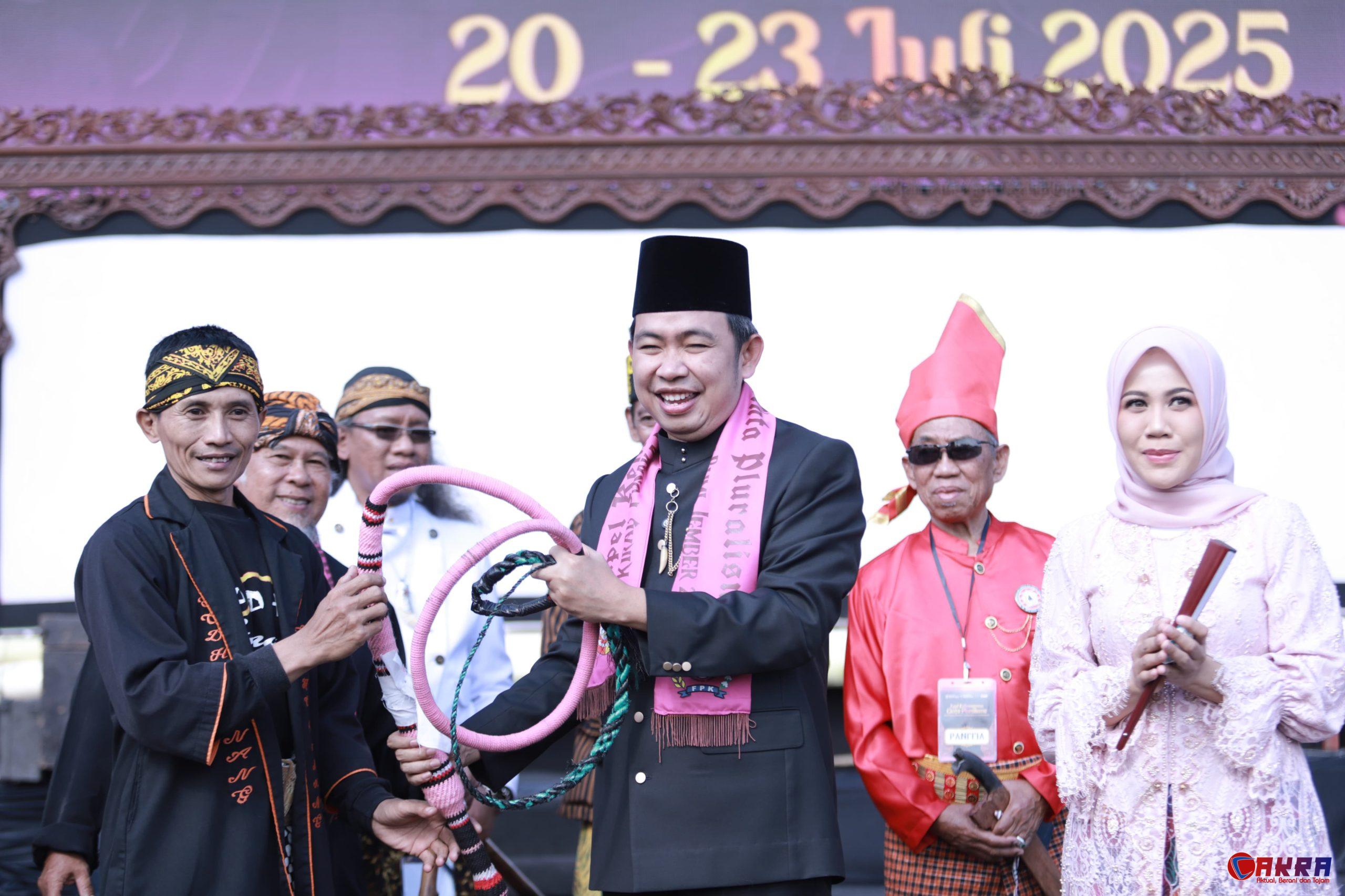 Jember, 20 Juli 2025 , Cakra.or.id – Pemerintah Kabupaten Jember, untuk pertama kalinya, menyelenggarakan Apel Kebangsaan Cinta Pluralisme yang dimeriahkan dengan Kirab Pusaka Nusantara, Sedekah Bumi, dan Pameran Pusaka di Alun-Alun Nusantara Jember. Acara yang berlangsung antusias ini diikuti seluruh elemen masyarakat dari 31 kecamatan dan 226 desa/22 kelurahan.