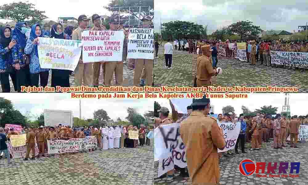 CAKRA.OR.ID | Pringsewu – Suasana tak biasa menyelimuti Kabupaten Pringsewu, Lampung, Senin, 17 Maret 2025. Ratusan ASN dari Dinas Pendidikan, Dinas Kesehatan, dan para Kepala Pekon (desa) se-Kabupaten Pringsewu menggelar aksi damai di depan kantor Polres Pringsewu. Aksi ini bertujuan mendesak agar Kapolres Pringsewu, AKBP M Yunus Saputra, tidak dicopot dari jabatannya.