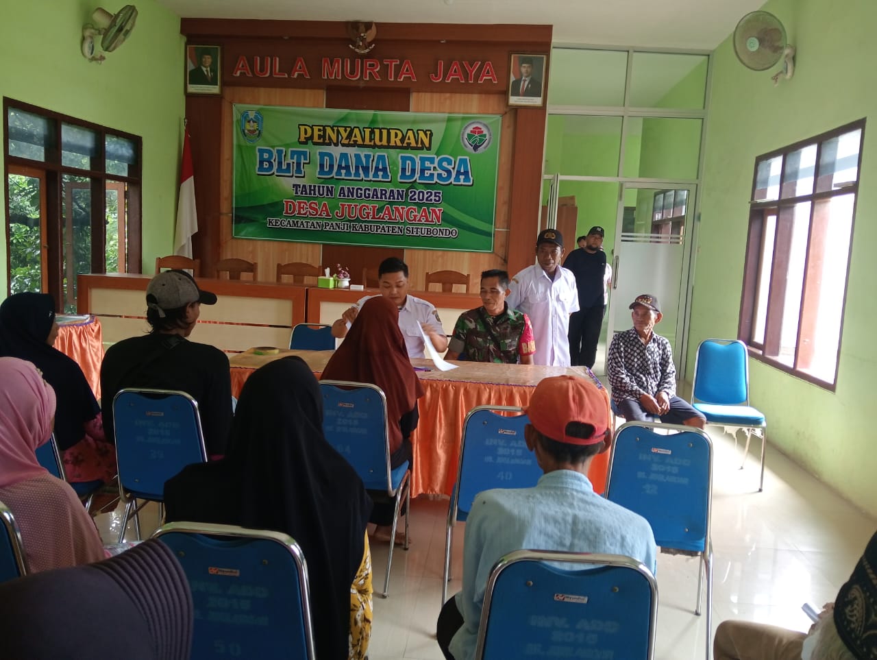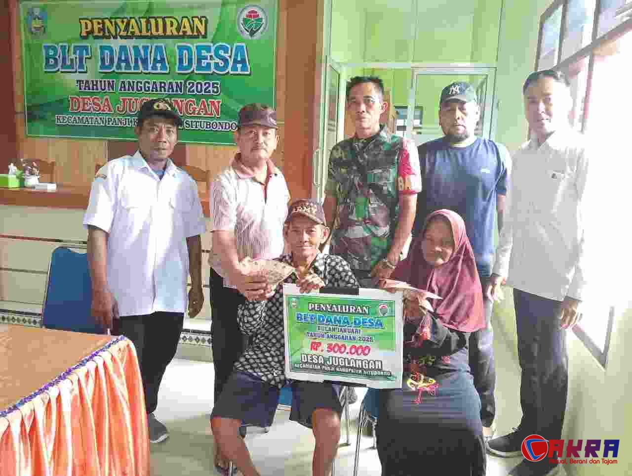 CAKRA.OR.ID | Situbondo – Pemerintah Desa Juglangan, Kecamatan Panji, Kabupaten Situbondo, telah menyalurkan Bantuan Langsung Tunai Dana Desa (BLT-DD) Tahun Anggaran 2025 kepada para penerima manfaat. Penyerahan bantuan secara simbolis dilakukan oleh Subagio, Kepala Desa Juglangan, di Balai Desa Juglangan.