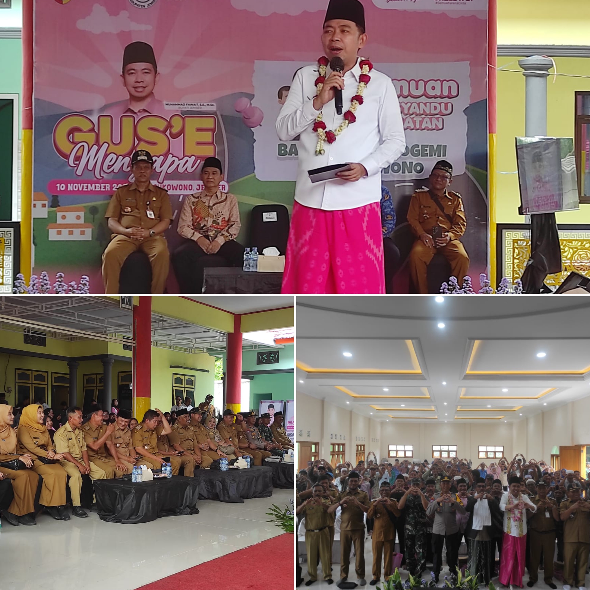 Bupati Jember, Muhammad Fawait, yang akrab disapa Gus Fawait, membuka acara dengan semangat. Ia menyapa warga, termasuk seluruh kepala desa yang hadir, dengan menyebutkan nama mereka satu per satu. Kehadiran para kepala desa, ratusan warga, anggota Posyandu, dan Laskar Srikandi di Balai Desa Mojogemi menambah kemeriahan acara.