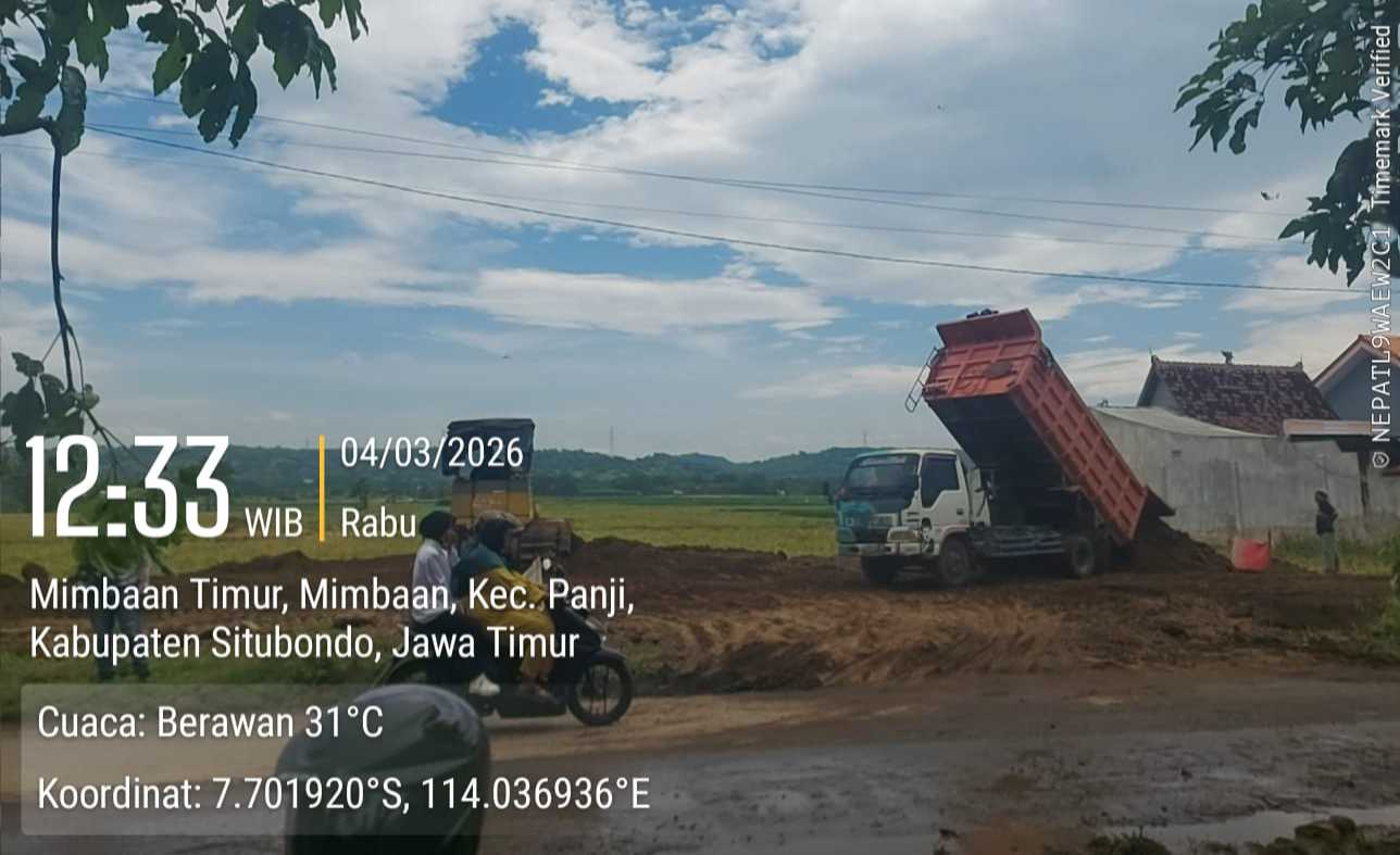 Situbondo, Newscakra.com – Sebuah lahan sawah seluas sekitar 1 hektar di Kelurahan Mimbaan, Kecamatan Panji, Kabupaten Situbondo, ditemukan dalam kondisi ditimbun dan diduga dilakukan tanpa izin pengeringan serta melibatkan Lahan Sawah Dilindungi (LSD). Kegiatan penimbunan ini diduga dilakukan oleh sebuah perusahaan pengembang perumahan.Rabu,04/03/2026