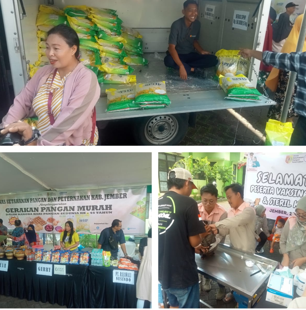 Sekretaris Dinas Ketahanan Pangan dan Peternakan Jember, Asrah Joyo Widono, yang mewakili Kepala Dinas (karena ada kegiatan lain di luar), menjelaskan bahwa acara ini menyediakan berbagai kebutuhan pokok. “Hari ini, kami menyediakan beras SPHP dari Bulog sebanyak 1 ton, telur sebanyak 50 kotak/krak, dan minyak goreng sebanyak 400 liter,” jelas Asrah. Semua barang tersebut laku terjual dengan cepat dan hampir habis. Selain itu, banyak juga produk dari UMKM yang turut meramaikan acara.