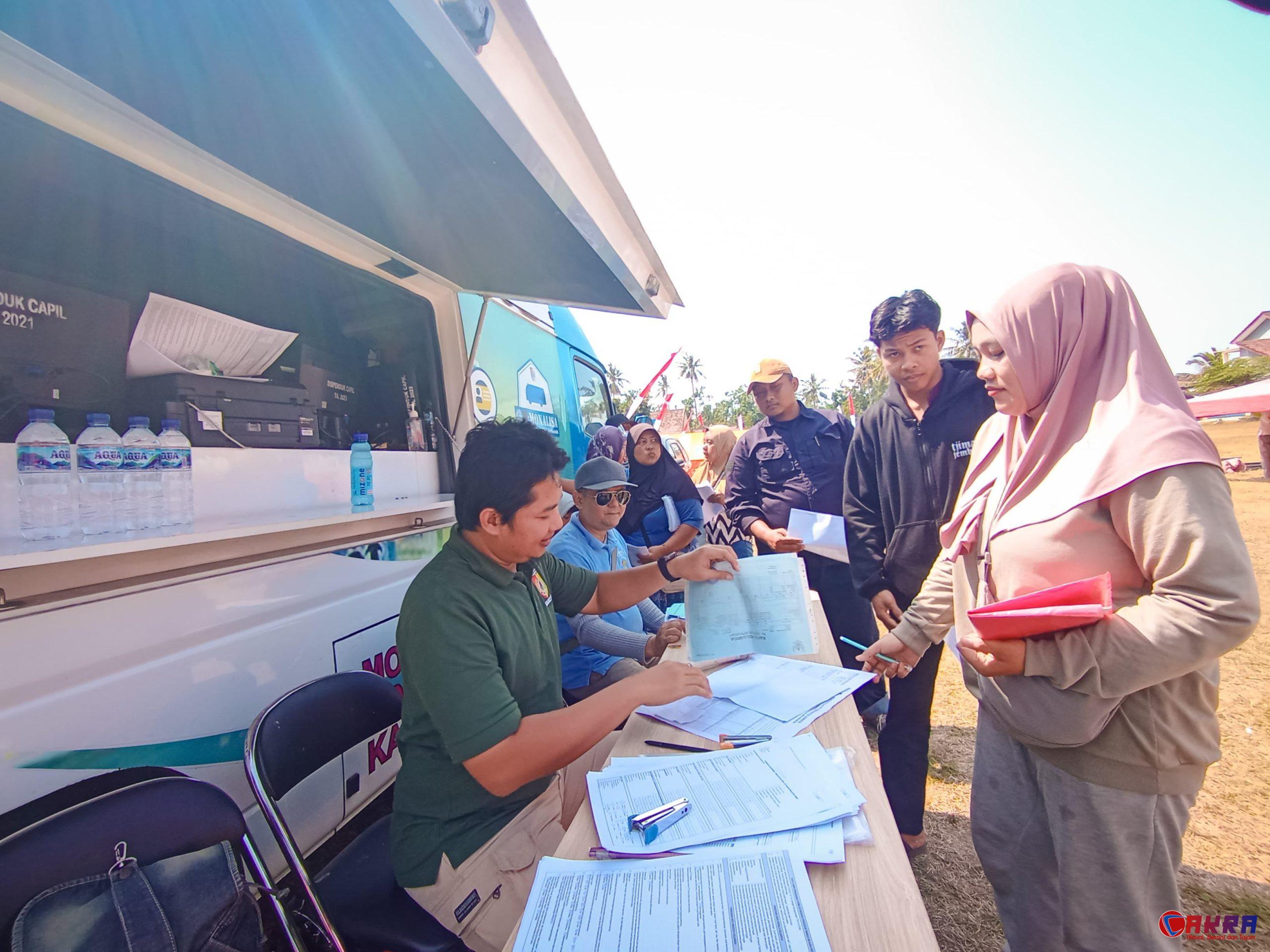 Total keseluruhan 256 berkas permohonan berhasil diproses oleh petugas Dispendukcapil. Rinciannya meliputi 47 lembar Kartu Keluarga, 179 keping e-KTP, 19 orang perekaman baru, dan 11 lembar Akta Kelahiran.