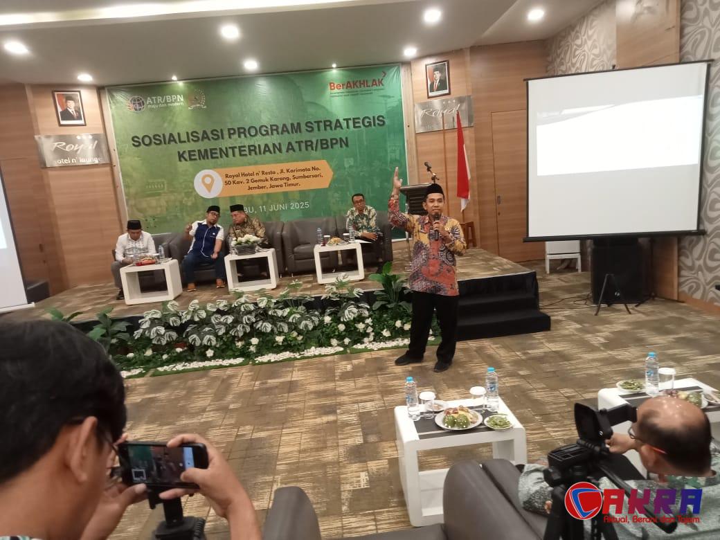 Acara yang bertempat di Hotel Royal, Jalan Karimata, Kelurahan Sumbersari, Jember, ini bertujuan meningkatkan pemahaman dan kesadaran masyarakat terkait sertifikasi tanah, khususnya program wakaf dan Pendaftaran Tanah Sistematis Lengkap (PTSL).