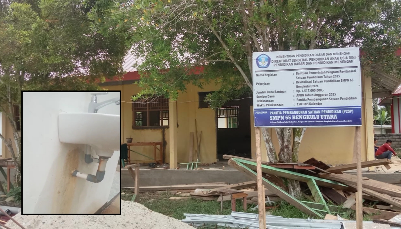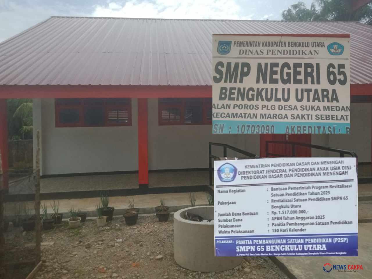 Newscakra.com 03 MARET 2026 – Proyek revitalisasi sarana dan prasarana di SMP Negeri 65 Bengkulu Utara yang didanai Kementerian Pendidikan melalui skema swakelola kini terpuruk dalam dugaan maladministrasi dan praktik tidak transparan. Pantauan lapangan dan laporan warga mengungkap indikasi kuat adanya kolusi serta pengawasan yang sangat minim, yang berpotensi menyebabkan pemborosan anggaran negara dan pembangunan tidak sesuai standar.