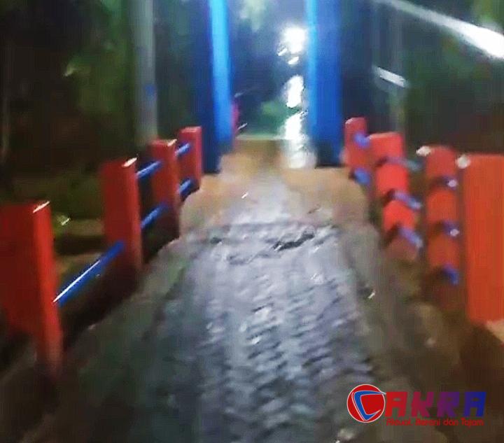 JEMBER,Newscakra.com – Hujan deras yang mengguyur wilayah hulu Sungai Bedadung sejak beberapa hari terakhir menyebabkan air sungai meluap hingga merendam permukiman warga di Desa Jubung, Kecamatan Sukorambi, Jember. Akibatnya, sebuah jembatan gantung yang menjadi akses vital warga dilaporkan roboh pada Jumat (14/12/2025) sore, sesaat setelah waktu Magrib.