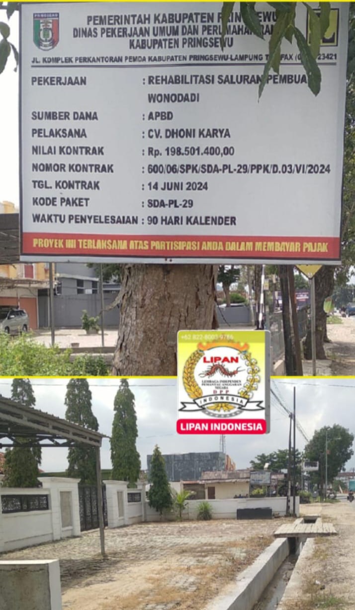 Jalan Lintas Barat adalah jalan nasional yang seharusnya dibiayai menggunakan Anggaran Pendapatan dan Belanja Nasional (APBN), bukan APBD Kabupaten Pringsewu. Pekerjaan rehabilitasi drainase saluran pembuangan di Pekon Wonodadi tersebut menghabiskan anggaran sebesar Rp 198.501.400, bersumber dari APBD Pringsewu 2024.