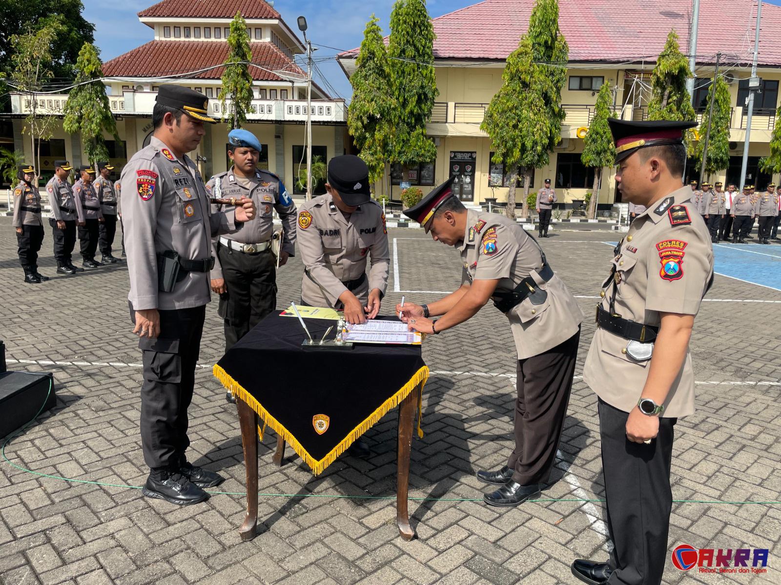 newscakra.com, SITUBONDO – Kapolres Situbondo AKBP Rezi Dharmawan, S.I.K., M.I.K., memimpin upacara serah terima jabatan (Sertijab) sejumlah Pejabat Utama (PJU) Polres Situbondo. Upacara yang digelar di lapangan apel Mapolres Situbondo pada Selasa (29/10/2025) ini menandai rotasi pada posisi-posisi strategis.