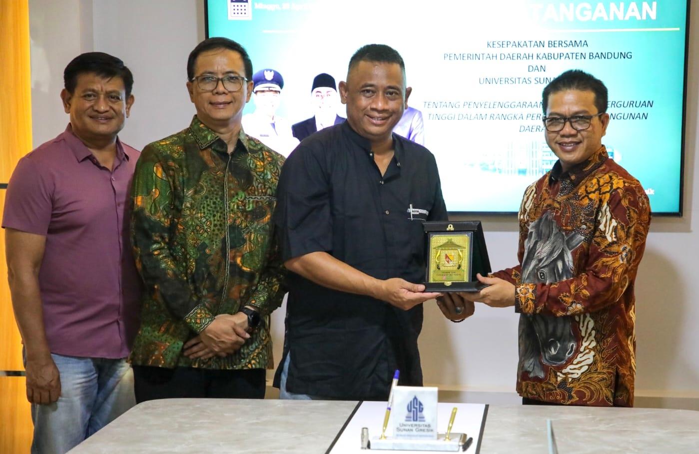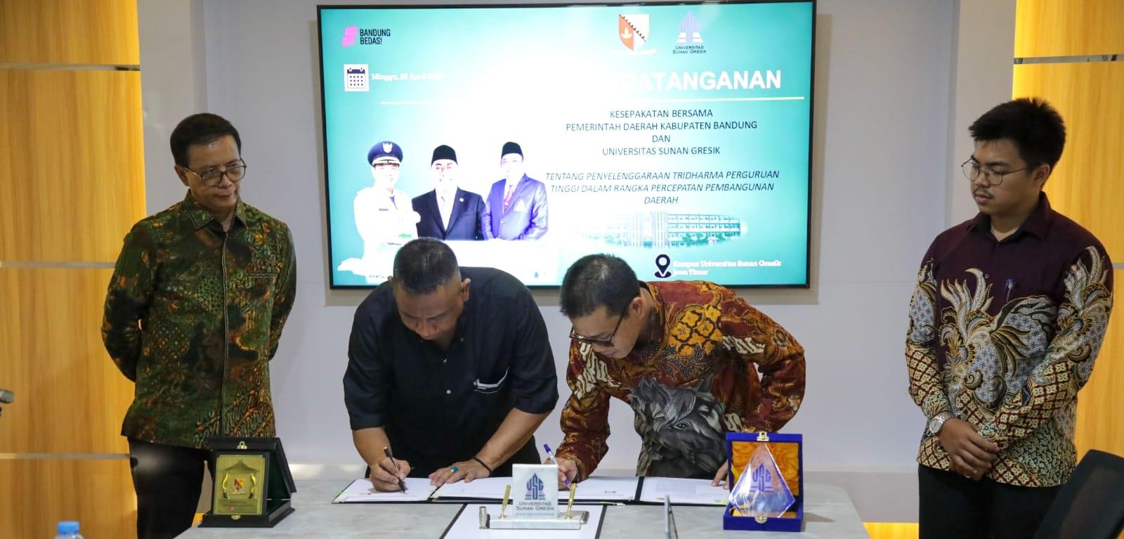 Newscakra – Pemerintah Kabupaten Bandung dan Universitas Sunan Gresik (USG) resmi menjalin kerja sama strategis melalui penandatanganan Nota Kesepahaman (MoU) yang berfokus pada peningkatan kualitas sumber daya manusia (SDM), khususnya aparatur sipil negara (ASN), guna menjawab tantangan digitalisasi dan menyongsong Indonesia Emas 2045. Penandatanganan dilaksanakan pada Minggu (26/4/2026) di Kampus USG, Kabupaten Gresik.