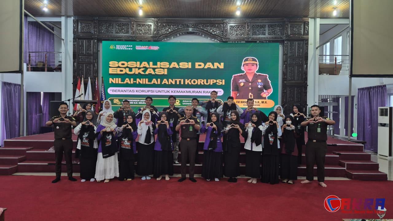 Pringsewu,Newscakra.com – Dalam rangka memperingati Hari Antikorupsi Sedunia (Hakordia) Tahun 2025, Kejaksaan Negeri (Kejari) Pringsewu menggelar kegiatan sosialisasi dan edukasi nilai-nilai antikorupsi yang bertemakan “Berantas Korupsi untuk Kemakmuran Rakyat.” Acara yang berlangsung di Aula Universitas Aisyah Pringsewu pada Selasa, 9 Desember 2025, pukul 14.30 WIB ini, berhasil menarik antusiasme ratusan mahasiswa dari berbagai jurusan.Selasa,09/12/2025