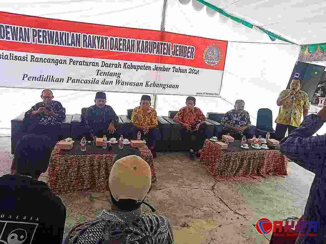 Jember , Cakra.or.id – Bertemoat Di Desa Kemuning Sari Kidul, Kecamatan Jenggawah, Kabupaten Jember, Komisi C DPRD Kabupaten Jember menggelar sosialisasi Rancangan Peraturan Daerah (Raperda) tentang Pendidikan Pancasila dan Wawasan Kebangsaan. Acara yang bertempat di kediaman Bapak Sujarwo, anggota Komisi C DPRD Kabupaten Jember, ini bertujuan mensosialisasikan Raperda tersebut kepada masyarakat.