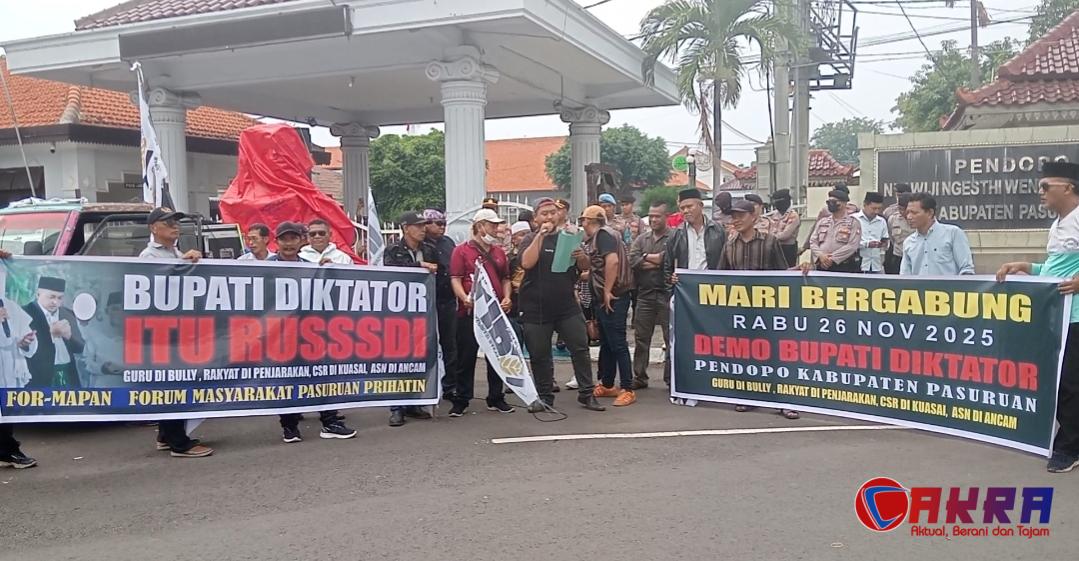 PASURUAN NewsCakra.com – Forum Masyarakat Pasuruan Prihatin (FORMAPAN) kembali menggelar aksi demonstrasi di Pendopo Bupati Pasuruan, Jalan Panglima Sudirman, menyusul aksi sebelumnya di perusahaan AQUA Gondangwetan. Aksi ini diwarnai kritik keras terhadap Pemerintah Kabupaten Pasuruan atas penanganan sejumlah persoalan masyarakat.