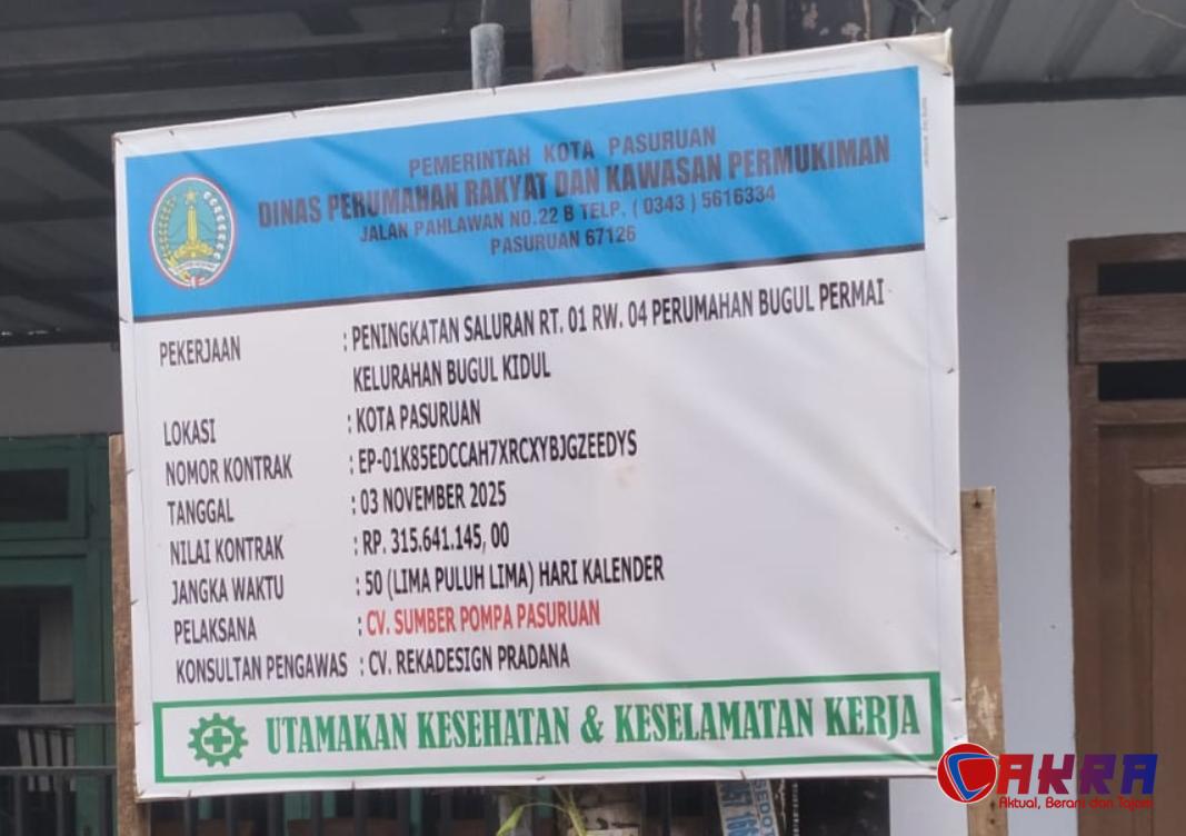 KOTA PASURUAN newscakra.com – Proyek Peningkatan Saluran di Perumahan Bugul Permai, Kelurahan Bugul Kidul, yang berada di bawah naungan Dinas Perumahan Rakyat dan Kawasan Permukiman (Perkim) Kota Pasuruan, kian menjadi sorotan tajam. Selain dugaan pengerjaan asal-asalan yang tidak sesuai RAB, pantauan di lokasi menunjukkan kualitas fisik proyek senilai Rp315.641.145,00 tersebut sangat buruk, ditandai dengan pemasangan U-Ditch yang tidak presisi dan banyak celah.