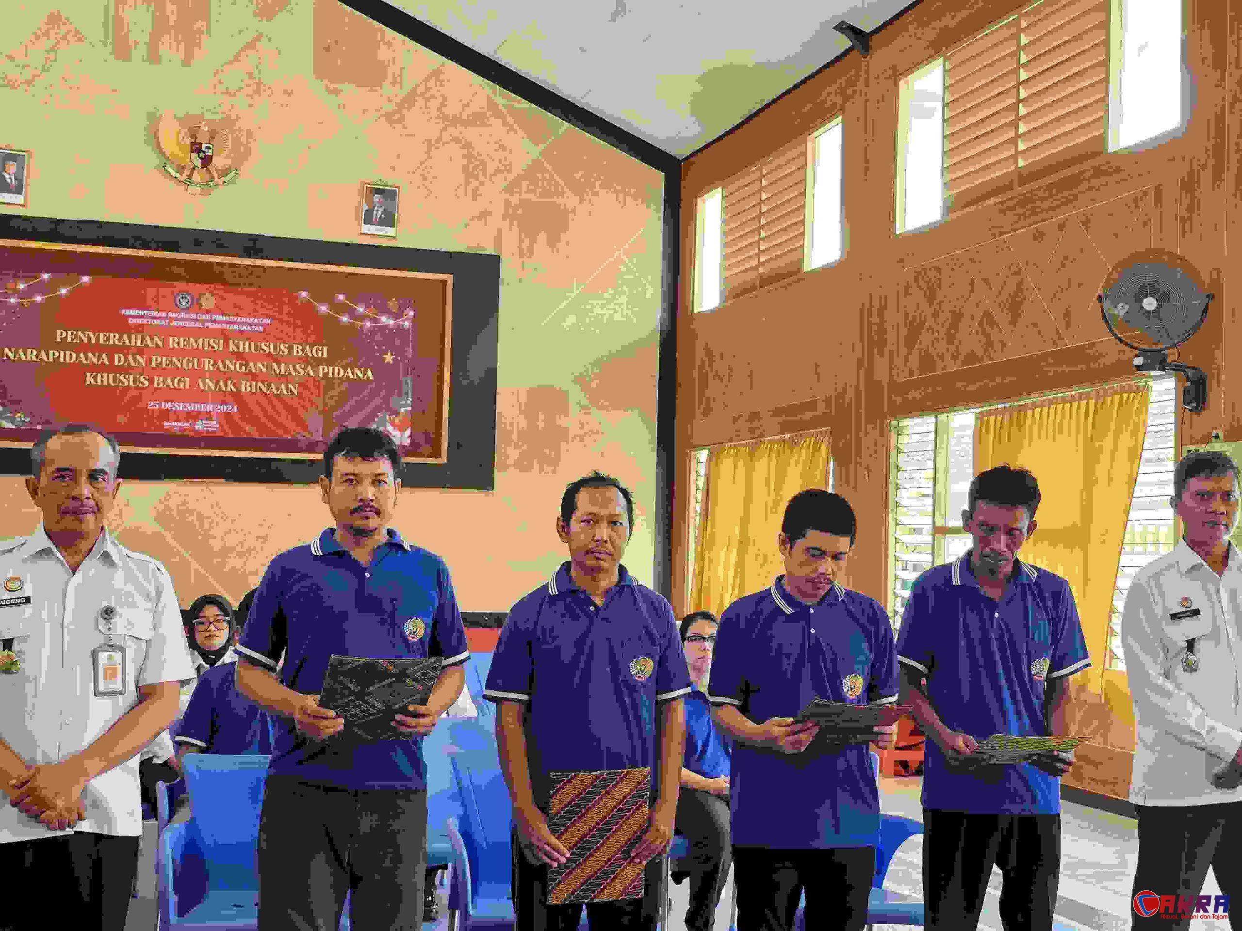 Bojonegoro||www.cakra.or.id|| – Lembaga Pemasyarakatan (Lapas) Kelas IIA Bojonegoro menggelar acara pemberian Remisi Khusus Natal dan Pengurangan Masa Pidana Khusus Natal bagi Narapidana dan Anak Binaan pada Rabu, 25 Desember 2024. Kegiatan ini dilaksanakan secara daring melalui zoom meeting mengikuti kegiatan yang diselenggarakan oleh Direktorat Jenderal Pemasyarakatan yang berpusat di Lapas Kelas IIA Perempuan Bandung.