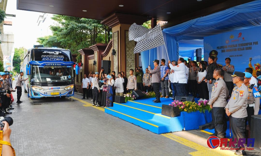 JAKARTA Cakra.or.id – Kapolri Jenderal Listyo Sigit Prabowo resmi melepas 1.575 buruh yang terdampak Pemutusan Hubungan Kerja (PHK) untuk bekerja di tempat yang baru serta angkatan kerja baru. Hal ini diharapkan menjadi kabar gembira di tengah dampak dari perekonomian global yang ada.