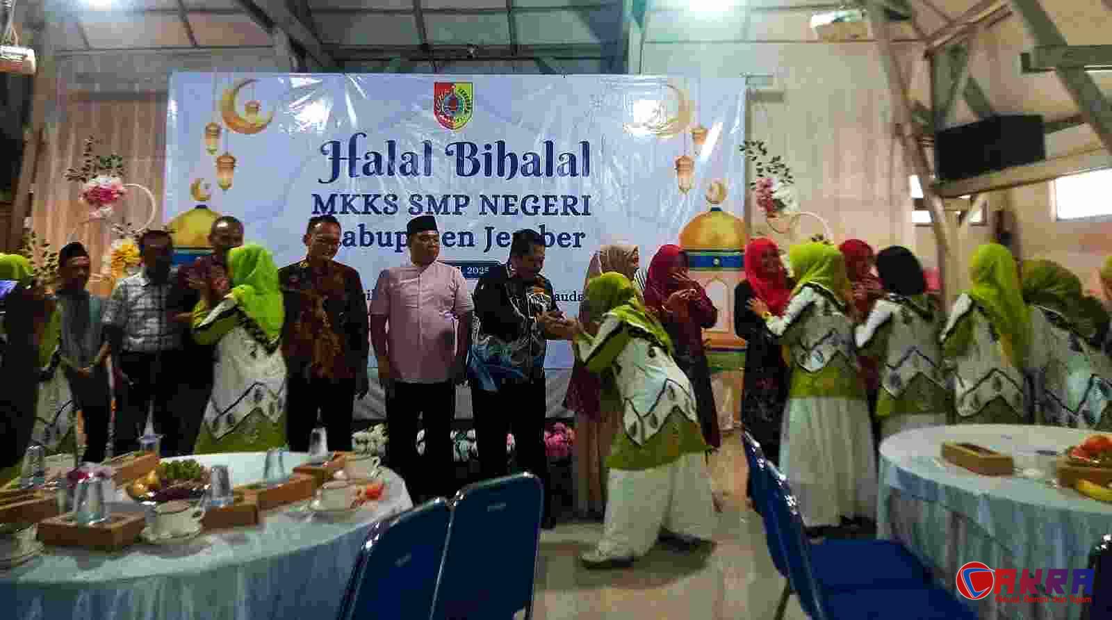 Jember, Cakra.or.id – Suasana hangat dan penuh keakraban menyelimuti Aula SMP Negeri 1 Jember, Kamis (04/05/2023). Sebanyak Seluruh kepala sekolah SMP Negeri di Kabupaten Jember bersatu dalam agenda Halal Bihalal yang digelar oleh MKKS Se Kabupaten Jember.