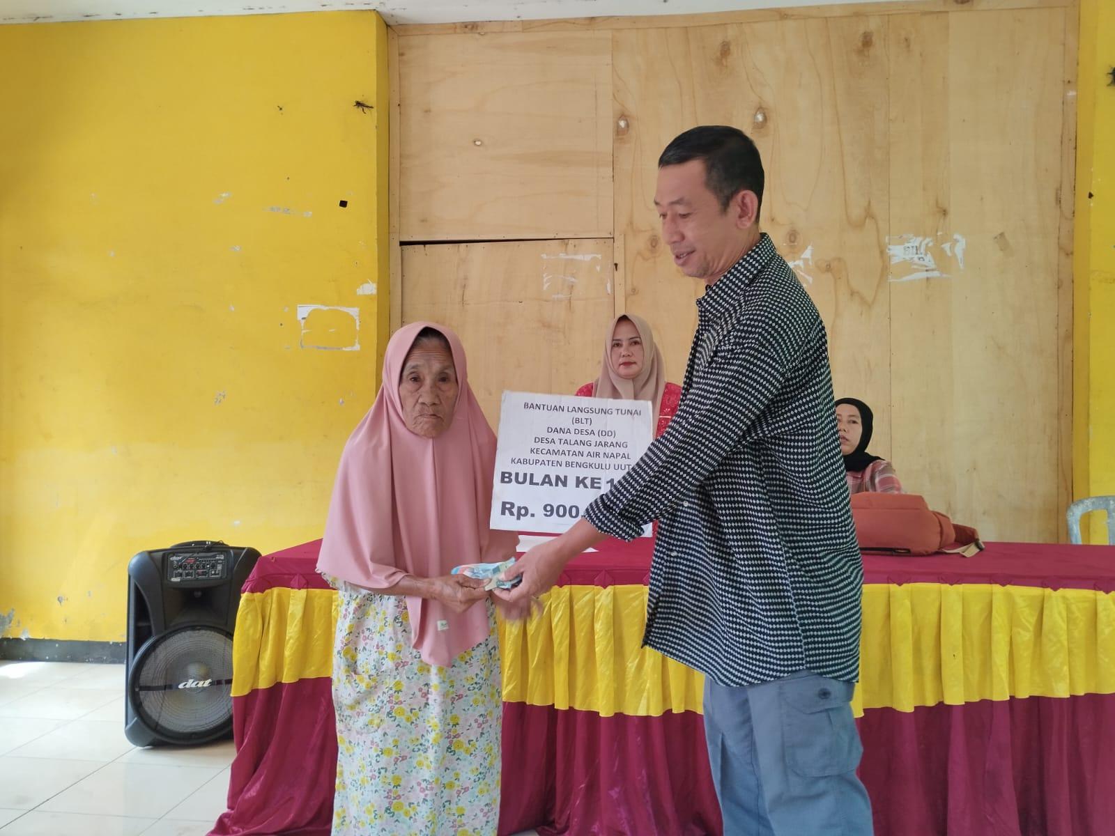 Bengkulu Utara,Newscakra.com – Pemerintah Desa Talang Jarang, Kecamatan Air Napal, melaksanakan kegiatan penyaluran Bantuan Langsung Tunai Dana Desa (BLT-DD) untuk periode Januari hingga Maret 2026. Kegiatan ini juga sekaligus menjadi momen pembagian honorarium bagi seluruh lembaga dan perangkat desa.