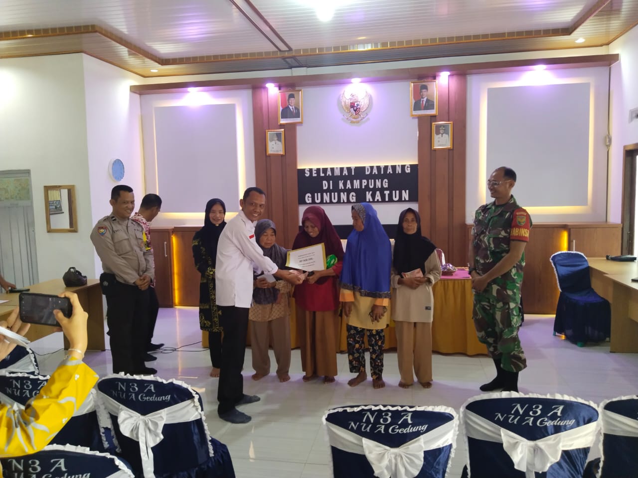 Dalam sambutannya, Kepala Kampung Gunung Katun, Juai Ferawati, menyampaikan bahwa bantuan BLT-DD Kemiskinan Ekstrem tahap kedua sebesar Rp900.000,00 per bulan (April, Mei, dan Juni) telah disalurkan kepada 32 Keluarga Penerima Manfaat (KPM). Ia berharap bantuan ini bermanfaat dan dapat menunjang perekonomian masyarakat Kampung Gunung Katun.