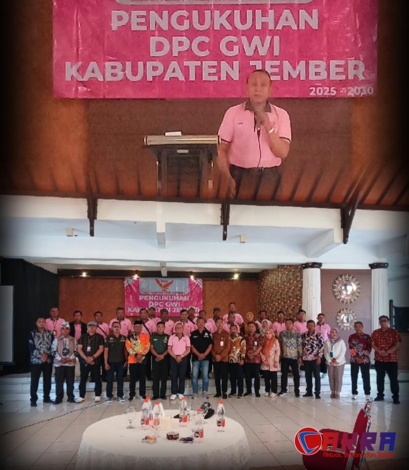 JEMBER , Cakra.or.id – Puji syukur dipanjatkan kepada Tuhan Yang Maha Esa atas pengukuhan Dewan Pimpinan Cabang (DPC) Gabungan Wartawan Indonesia (GWI) Jember untuk masa bakti 2025-2028. Acara pengukuhan berlangsung sederhana namun penuh makna di Aula Rumah Makan Lestari Jember pada Kamis, 14 Agustus 2024.