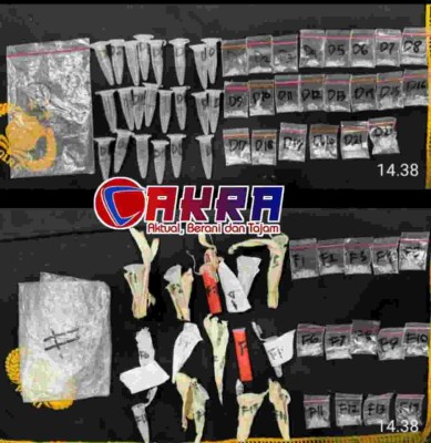 Dari hasil penggeledahan, petugas menemukan berbagai jenis barang bukti, di antaranya sabu-sabu yang dikemas dalam beberapa poket, timbangan digital, handphone, dan sejumlah barang lainnya yang diduga terkait dengan tindak pidana narkoba.