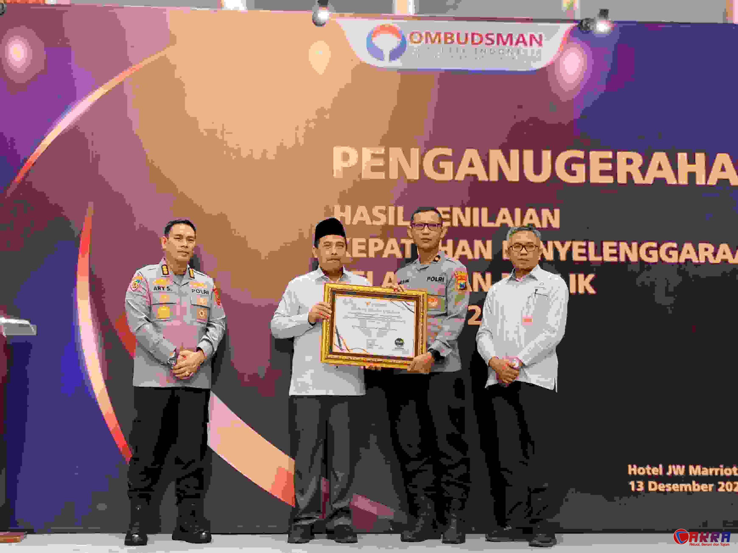 Ombudsman RI telah memberikan penghargaan kepada Polres Bojonegoro Polda Jatim pada anugerah predikat penilaian kepatuhan penyelenggaraan pelayanan publik tahun 2024.