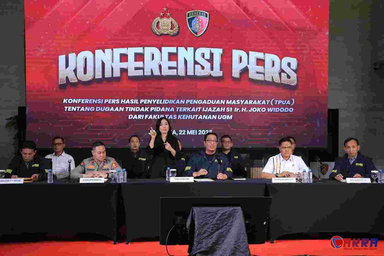 Jakarta | Cakra.or.id | – Bareskrim Polri menegaskan bahwa dokumen ijazah Joko Widodo dinyatakan asli dan sah berdasarkan hasil penyelidikan dan uji forensik yang mendalam. Hal ini disampaikan dalam konferensi pers oleh Direktorat Tindak Pidana Umum (Dittipidum) Bareskrim Polri di Lobby Utama Gedung Awaloedin Djamin, Bareskrim Polri, Jakarta, Kamis (22/5).