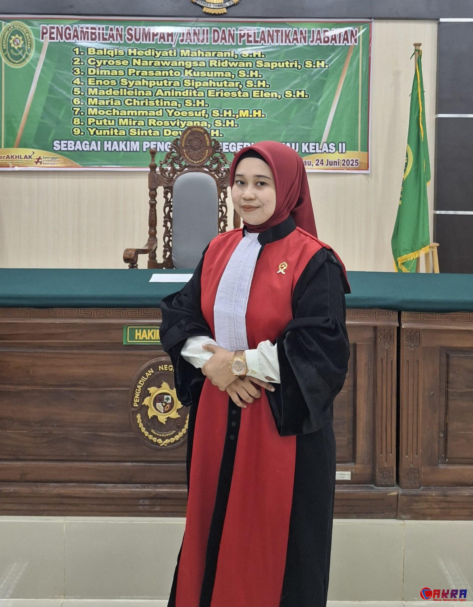 Cakra.or.id – Madelleina Anindita Eriesta Elen S.H., seorang putri daerah Situbondo dan putri dari Ketua LSM Perjuangan Rakyat, Rahmat Hartadi, resmi dilantik di Pengadilan Negeri (PN) Rantau dan ditugaskan pertama kali sebagai hakim di Kalimantan Selatan, Selasa (24/6/2025).