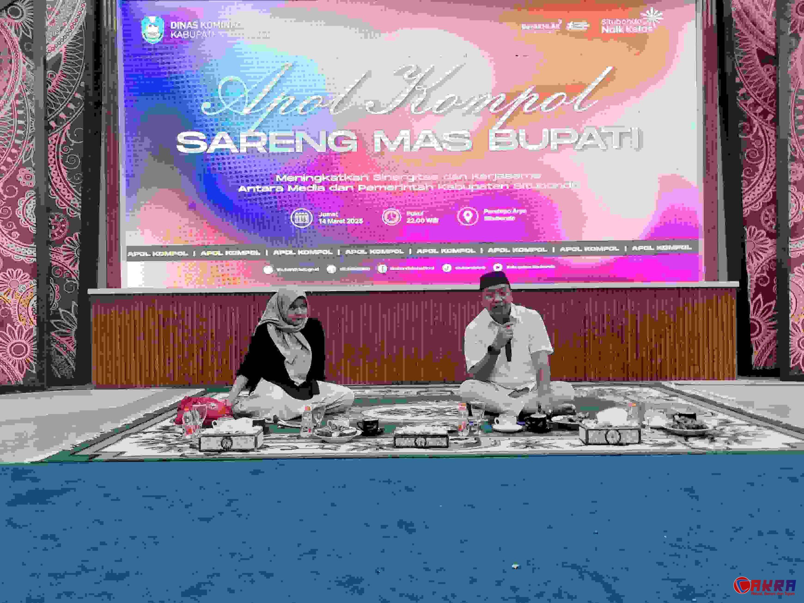 CAKRA.OR.ID | Situbondo – Suasana hangat dan penuh keakraban menyelimuti Pendopo Aryo Situbondo pada Jumat (14/3/2025) saat Bupati muda, Mas Rio, menggelar acara “Apol Kompol Sareng Mas Bupati.” Acara yang dikemas dengan konsep lesehan ini menjadi wadah istimewa bagi para jurnalis dari media cetak dan online untuk bersilaturahmi dan berdiskusi hangat dengan pemimpin daerah mereka.