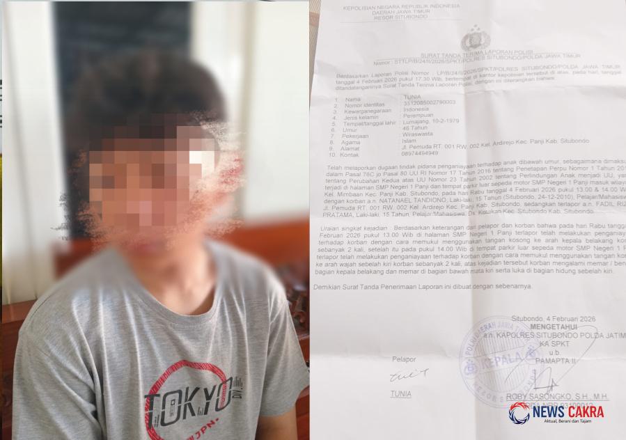 newscakra.com, SITUBONDO – Dunia pendidikan di Situbondo kembali tercoreng oleh aksi kekerasan antar pelajar. Seorang siswa kelas 9 salah satu Sekolah Menengah Pertama (SMP) dilaporkan menjadi korban penganiayaan oleh rekan sekolahnya sendiri hingga mengalami luka-luka serius. Tidak terima dengan kondisi sang anak, orang tua korban akhirnya memilih menempuh jalur hukum.