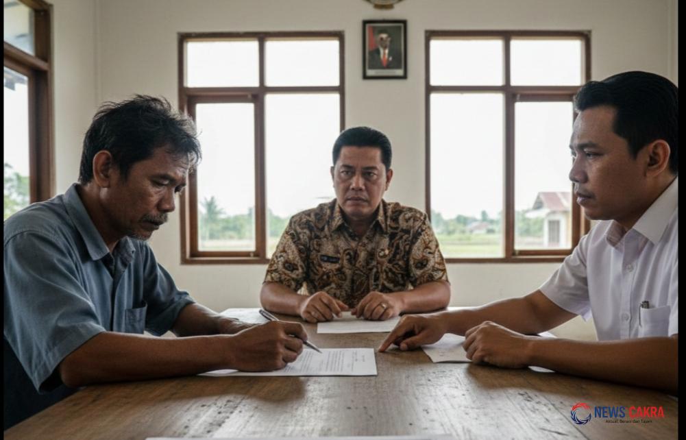 Kasus ini menyeret nama Kepala Desa setempat setelah diketahui turut membubuhkan tanda tangan dan stempel resmi pada dokumen kesepakatan tersebut. Tindakan ini dinilai bukan lagi sekadar memfasilitasi, melainkan memberikan legitimasi pada praktik yang diduga mengandung unsur pemerasan.