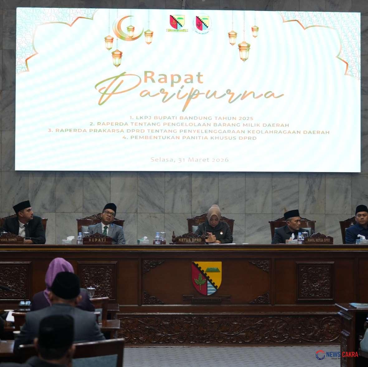 Newscakra – Bupati Bandung, Dadang Supriatna (Kang DS) menyampaikan Nota Pengantar Laporan Keterangan Pertanggungjawaban (LKPJ) Akhir Tahun Anggaran 2025 dalam Rapat Paripurna DPRD Kabupaten Bandung, Selasa (31/3/2026).