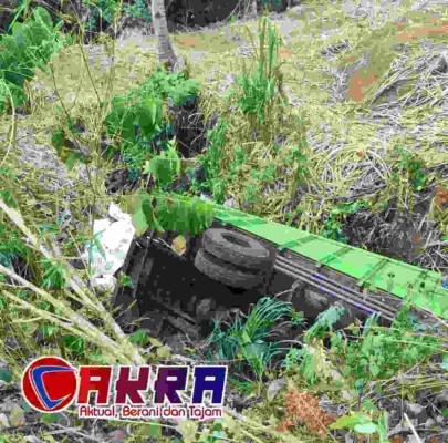 Akibatnya, truk tersebut menabrak sepeda motor yang berada di belakangnya. Setelah menabrak sepeda motor, truk terjatuh ke jurang.