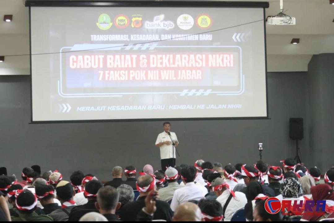 NewsCakra.com Bandung, 11 Desember 2025 – Untuk pertama kalinya dalam sejarah upaya deradikalisasi di Indonesia, tujuh faksi kelompok Negara Islam Indonesia (NII) di wilayah Jawa Barat secara serentak melaksanakan Cabut Baiat Massal dan Deklarasi Setia kepada Negara Kesatuan Republik Indonesia (NKRI). Kegiatan ini berlangsung khidmat di Aula Ki Hajar Dewantara, Dinas Pendidikan Provinsi Jawa Barat.
