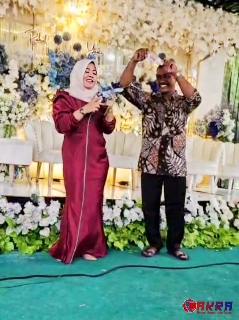Lain hanya dengan yang terjadi di dalam acara Nikahan terlihat seorang ibu DS kepala Desa Ngemplak , Kec.Baureno , kabupaten Bojonegoro yang sedang menyumbang lagu di acara pernikahan tersebut.