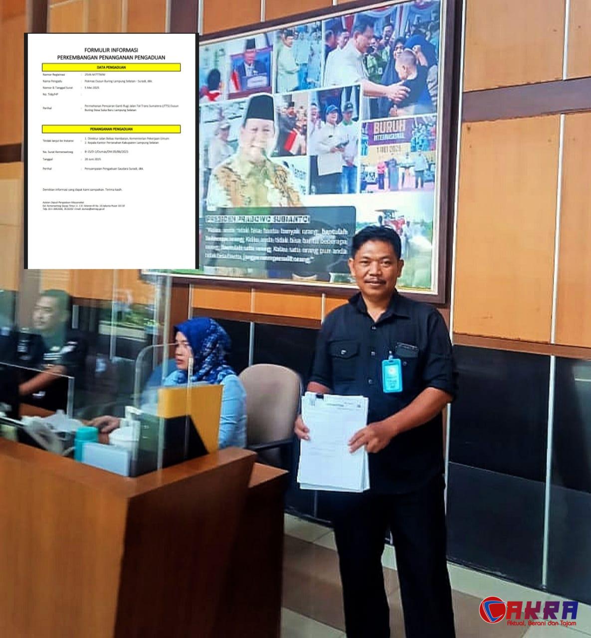 Surat pengaduan terakhir yang dikirimkan pada 5 Mei 2025, telah diterima oleh Kementerian Sekretariat Negara dan telah diteruskan ke Badan Pertanahan Nasional (BPN) Lampung Selatan dan Kementerian PUPR.