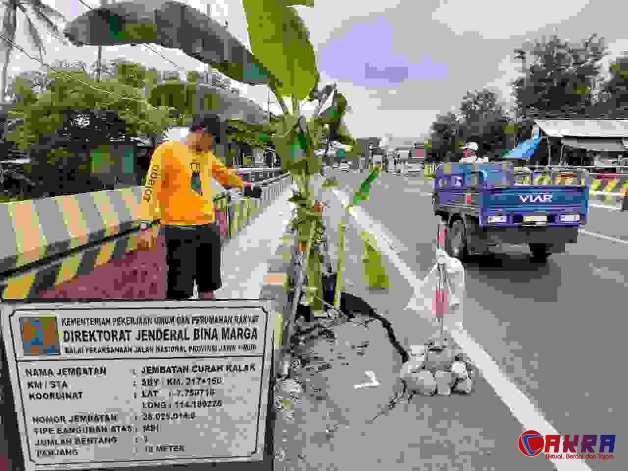 Situbondo,Cakra.or.id – Kemarahan meledak di Situbondo setelah Jembatan Curah Kalak, baru rampung dibangun, menunjukkan kerusakan parah. Lubang menganga di badan jembatan, yang terletak di jalur vital Situbondo-Ketapang-Banyuwangi (KM.217+160), mengancam keselamatan pengguna jalan. Warga menyatakan protes dengan menancapkan pohon pisang di area jembatan yang jebol, simbol nyata kekecewaan mereka.